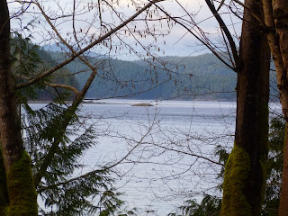 I did enjoy the abundant sea life that we have access to here, as well as the weathered drift wood - this piece reminded me of a swimming turtle. I'm always amazed at the life that is easy to overlook at a glance from a distance, from barnacles to hermit crabs it's so much fun to stop and watch and wait for nature to unfold in front of you. There were ducks (coots, mallards, barrows golden eye) a couple of Canada geese (or "Canada the Goose" as my nephew used to say when he was 3) swimming along happily on the calm, still waters in front of a backdrop of tree-covered shore-line that reached up into hills and mountains that were snow-capped and glistening in the morning light.